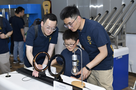 在实验室现场,近百件可亲手操作的演示仪器,让校友家庭兴致盎然。那些曾伴随求学时光的物理专业知识,遇上现场琳琅满目的趣味演示仪器,熟悉感与新鲜感交织。校友与孩子一同动手体验,大朋友回味学科魅力,小朋友探索科学奥秘,人人都乐在其中。